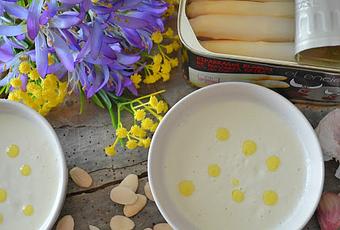 Ingredientes: 4 comensales100 gr almendra molida o entera cruda sin piel1 lata pequeña de espárragos (400gr) con su jugo1 diente de ajo50 gr miga de pan del día anterior50 gr aceite de oliva2 cucharadas de vinagre de manzanasal y pimienta al gusto agua