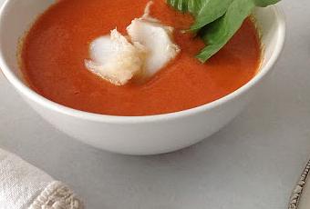 Trituráis con el brazo de la batidora los pimientos del piquillo, pepinos, ajo pelado, tomates y la albahaca.