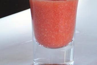 Al final, por vuestra culpa, he sucumbido a probar estos "fistros" de gazpacho. Los he visto hechos de fresa, de sandía, de melón, de cerezas... Me parecían una extravagancia total y absoluta y una manera de "adulterar" el gazpacho tradicional, pero una vez catado, tengo que decir que "VIVA LA ADULTERACIÓN", que no el adulterio, conste...jejeje, y recordad, esta noche, A POR ELLOS!!!INGREDIENTES: