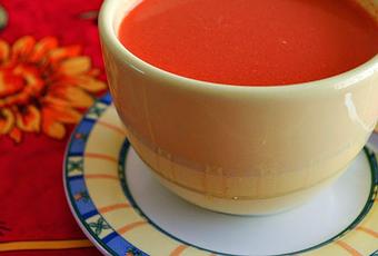Pues para rebajar un poco el caldeado ambiente, esta que os traigo hoy es una receta facilísima y muy apropiada en esta época en la que empiezan a verse las primeras sandías. ¡Fresquita y como entrante es ideal! Y como es echar todo a la batidora no puede ser más rápida y sencilla. Tenéis también la posibilidad de preparar la variante con melón. Podéis ver la receta aquí.