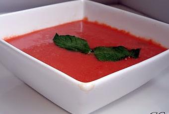 -Se adorna con una hoja de hierbabuena. Y si sobra gazpacho se mete en el frigorífico con unas poquitas hojas de hierbabuena para que le dé frescura al gazpacho.