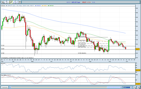 Desde una perspectiva de medio plazo el Libra-Yen está inmerso en una clara tendencia bajista desde que alcanzase un máximo en los 251,12 en julio de 2007 y marcó un mínimo en los 118,85 en enero de 2009. Desde entonces se mueve en un amplio rango lateral y en función del grado de percepción del riesgo en los mercados financieros se va a por la parte baja o alta de dicho rango.