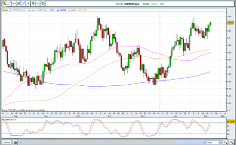 Sin embargo, al analizar el estocástico vemos que el rápido está otra vez cerca de niveles de sobrecompra lo que nos indica una corrección cercana en el precio. Atentos al soporte de los 1,6150. [VER GRÁFICO GBPUSD]