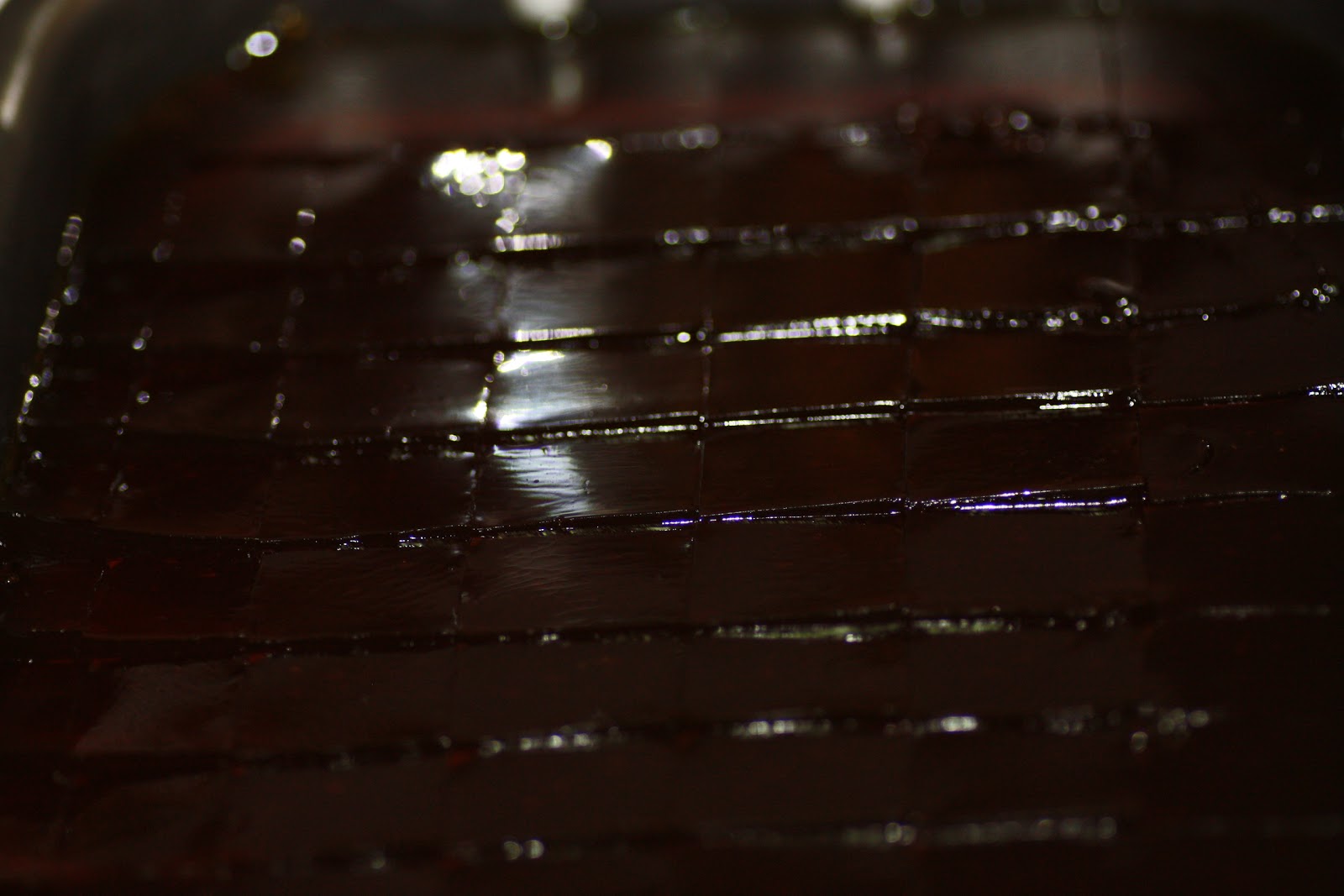 Cuando terminamos de mezclarlo, añadimos el agua hasta completar el medio litro necesario, y cuando está bien homogéneo, lo dejamos enfriar en el cazo durante unos 20 minutos. Sacamos de la nevera la gelatina de ron, y con cuidado vamos añadiendo la gelatina de cocacola sirviendola sobre una cuchara para no hacer agujero en la primera gelatina, que aún no estará plenamente cuajada. Una vez terminada la segunda capa, la metemos a la nevera hasta al menos dos horas, mejor 6, si lo podéis hacer con tiempo.