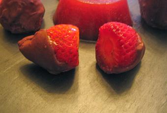 - No poner el microondas a máxima potencia y utiliza un recipiente de boca ancha (taza, cuenco,...) en el que puedas introducir la mano con la fresa para bañarla en chocolate.