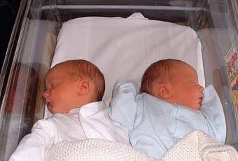 Gregorio, el primero en nacer, sólo esperó a la semana 24 de gestación (apenas en el quinto mes). Tenía sólo 650 gramos de peso e inmediatamente fue atendido en cuidados intensivos, pasando las primeras diez semanas de su vida en incubadora. Justo un mes después, el 18 de abril, quiso nacer su hermano Leonardo, con un peso bastante mejor (1,5 kg).Los gemelos comparten el útero en un mismo embarazo, ya que usualmente, aunque no necesariamente, son concebidos a la vez y nacen casi al mismo tiempo. Pueden darse horas, a veces un par de días entre los partos.