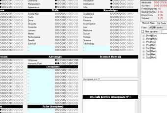 Fijaros que cosa mas chula nos trae nuestro compañero International Khiladi desde su blog. Es un generador de personajes,obra de Kryane para las ediciones del 20 aniversario de Vampiro y Mago, teniendo uno para Hombre Lobo en fase de pruebas y casi a punto. Nos comenta que al principio solo estaba en francés y ahora también el programa está también en inglés. Me lo he bajado y es super sencillo y fácil de usar.