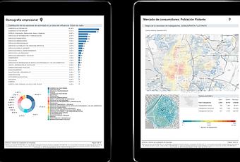 La herramienta, Geomarketing, de acceso inmediato online, permite el enriquecimiento automático de una cartera de clientes, para la búsqueda de clientes potenciales espejos, en un clic. A su vez, posibilita el análisis de micro-escala, por áreas de influencia alrededor de lugares determinados, mediante el dibujo de geometrías libres (polígonos, círculos, rectángulos) y áreas calculadas en distancia-tiempo, para estudiar la prospección de proximidad.