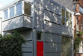 English version A modular home away from neoplastic conception. This work is one of the first orders received by Gerrit Thomas Rietveld since installing their study in the Schröder house. It comes to expansion of housing Vuurst Dr. de Vries designed to garage and rooms for his driver. Located in Waldeck Pyromontkade 20, Schildersbuurt, Utrecht, was designed in 1927 and constitutes an experienced of modular construction attached to a traditional building first used by in the Netherlands. The extension is formalized through a two-level rectangular box attached to the side wall of the house, at the lowest point of the pitched roof. The bottom part is reserved almost entirely to the garage. Red A door located on the front left side of the access to the hall where is located the staircase leading to the driver's home. A small volume cantilevered on the first floor is the only gesture that emphasizes the compact case. Rietveld designed systems architecture developed based on standard modules that allow unlimited variations, seeking to reconcile a pre industrialized building system with a basic design concept close to abstraction. The structure consists of four successive frames of iron that subordinate the dimensions of the rooms upstairs. A brick wall is located within the iron frame of 1 x 3 meters. Ahead of the walls were placed concrete exterior walls constructed of pre molded onto a metal frame in modules 1 meter wide. Each pre molded panel has a thickness of 8 cm, coated with a layer of black enamel with white circles in relief. This application is part of a perceptual experiment that produces different visual sensations as the distance to the observed. At present, this effect was lost because all the panels were painted with the same color. This experience, away of the mobility plans promulgated by the De Stijl group, is one of the precursors attempts in industrialized prototyping in the Netherlands and a unique experience in the work of Rietveld.Escrito en: Arquitectura