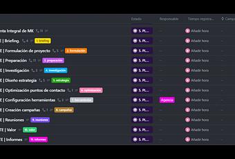 Tareas de setup | Este paquete de tareas es realmente crítico y necesario para formatear correctamente el proyecto de marketing digital. Consiste en la siguiente serie de subcategorías de tareas: 1. Briefing, 2. Formulación del Proyecto, 3. Preparación, 4. Configuración de Herramientas, 5. Documentación Base.