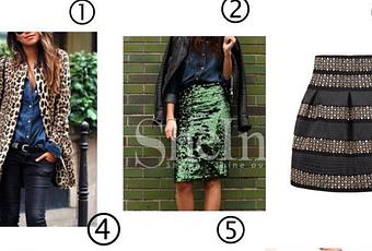 1. Vestido negro LBD..... aquí2. Vestido verde midi .... aquí3. Vestido encaje ..... aquí4. Abrigo leopardo .... aquí 5. Falda lentejuelas verde ..... aquí6. Falda con vuelo.... aquí7. Zapatos tacón con lazos ..... aquí8. Pulseras ..... aquí9. Botas altas negras ...... aquí10. Abrigo granate ........ aquí 11. Jersey con estampado navideño..... aquí12. Vestido lentejuelas ..... aquí