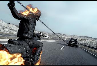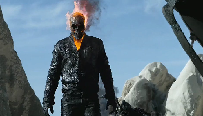 la segunda entrega de Ghost Rider fue el look visual que le dieron al personaje, tanto el cráneo como las ropas y la motocicleta se veían quemadas por el fuego del espíritu de la venganza,