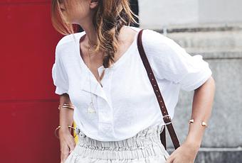 Este día hacía muchísimo calor y humedad en la ciudad, así que elegí un look muy veraniego con unos shorts de tiro alto de lino como protagonistas. Me parecen perfectos, goma frundida para marcar la cintura y sueltecitos de piernas, todo lo que busco en un pantalón corto para favorecer mi figura ;). Los combiné con una camiseta de cuello panadero de Zara, mis inseparables zapatillas blancas de Bershka y bolso marrón. ¡¡Espero que os guste!!