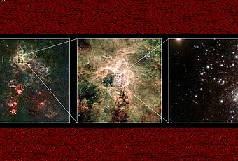 Pues bien, ayer mismo el ESO volvía a sorprendernos (otra vez) con la noticia del descubrimiento de la estrella más masiva conocida hasta ahora, que se encuentra dentro del cúmulo R136 de la Nebulosa de la Tarántula, en la mayor de las Nubes de Magallanes, a unos 157 000 años-luz de distancia de nosotros. Esta estrella ha sido descubierta por un equipo de astrónomos dirigidos por Paul Crowther, empleando el Very Large Telescope, además de otros datos obtenidos por el telescopio espacial Hubble.