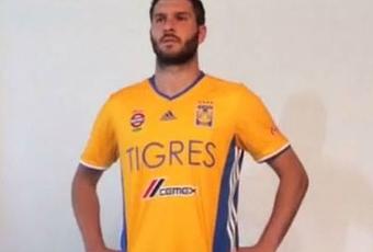 El delantero de los Tigres, André-Pierre Gignac, llego a la ciudad de Monterrey y de inmedito se presentó para lucir la nueva indumentaria de los felinos, la cual utilizarán para el Apertura 2016.