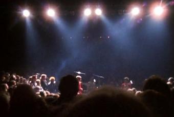 El punto es que si los Rolling Stones no hubiesen hecho ese concierto gratuito en el que todo salió mal, "Gimme Shelter" habría sido un documental muy plano, intrascendente y anodino, sin nada que ofrecer tanto al documental como género ni a los Rolling Stones como figuras musicales y públicas. Todo partió cuando los Maysles grabaron un concierto de los Stones en no sé dónde, momento en que le preguntaron a Mick Jagger si podían seguirlos por el resto de la gira, a lo que el segundo respondió que sí. Me imagino que los Maysles estuvieron siguiendo a los Stones por todo Estados Unidos, grabando los conciertos y las estadías en hoteles, visitas a estudios y demás, sin mayor propósito en mente que tener tal material filmado, todo con su estilo direct cinema, irónicamente el peor mal de este documental y en cierta medida el anterior "Salesman". Porque esta puesta en escena directa no ayuda en nada al documental, toda vez que el archivo de los Stones tocando en otros y más seguros espacios, los Stones llegando a hoteles y así, no presenta un tratamiento que indague en lo que esconde el fotograma y la acción en sí, mucho menos en la identidad de los miembros y cómo se relacionan con su música y su fama, o esas cosas que a la gente le gusta saber, ya saben, lo lo que no se ve, lo que está detrás de la máscara. En un momento los vemos escuchando y disfrutando íntima y quietamente de "Wild Horses", pero vamos, no me digan que es la cumbre de la exploración documental. Es, básicamente, pegar de manera cronológica los hechos, y no establecer una construcción musical, personal y hasta social. Lo único que salva la función, y perdonen lo repetitivo, es el desastroso concierto gratuito, no solo porque sus treinta minutos son lo mejor y más tenso del documental, sino porque ya al inicio se deja saber que éste es el eje central del "relato", lo que da pie a montar la línea temporal cronológica alternadamente con negociaciones de los abogados, archivos radiales post-concierto desastre, y los miembros de la banda observando todo el material, también de lo mejor del documental, pues es una especie de ejercicio de autocrítica que, a decir verdad, no es muy critico que digamos (Jagger dice "qué horrible situación" y adiós). Así, teniendo en la atmósfera la presencia del desastre de concierto (lo único que entrega continuidad y coherencia interna), veremos números musicales que salvan por la buena música (claro), la cotidianidad de los Stones que no salva porque se muestra poca personalidad y humanidad (culpa de la mirada de los Maysles), hasta que finalmente llegamos al gran acto de la función, la que sí tiene, no lo negaré, una cámara exhaustiva y minuciosa que encuentra detalles y detalles que le agregan sabor a todo, como por ejemplo el momento exacto de la puñalada, cuando vemos a un hombre negro sacar un arma (¿quién en su sano juicio saca un arma en medio de un concierto, una multitud y los Hell's Angels?) y recibir la paliza correspondiente de los moteros. Antes de eso veremos muchos drogados y atontados, interesantes duelos verbales entre hippies que culpan de todo a los moteros y los moteros que se defienden diciendo que los hippies drogados están arruinando todo (lo que es cierto), y el show de los Stones. En ese momento se nos cuenta algo, ¿antes? ... un innecesariamente alargado anuncio...
