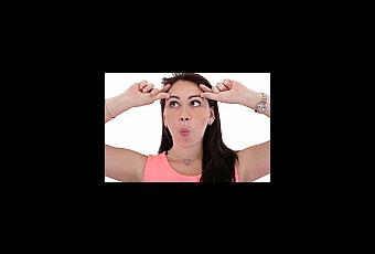 - Baja las cejas como si estuvieras enfadado y coloca las yemas de los dedos en la frente, presiona de forma suave y estira hacia afuera.