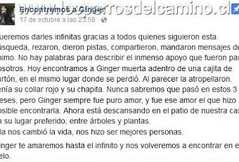 Con esta fecha la perrita Ginger, fue encontrada muerta.