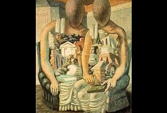 Giorgio de Chirico (1888 -1978) pintor italiano En los años previos a la Primera Guerra Mundial, fundó la "metafisíca scuola" movimiento artístico, que influyó profundamente en los surrealistas .El movimiento se inició con Chirico, cuyas obras de ensueño con fuertes contrastes de luz y sombra a menudo tenían una vaga amenaza, la claridad misteriosa, "pintar lo que no se puede ver".