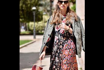Hoy os enseño un look muy gipsy, a base de un vestido estampado ideal y sandalias de tiras de Chloé, mis favoritas. Lo he combinado con una chaqueta sahariana en color verde militar y una de mis cestas de mimbre que tanto uso en esta época.