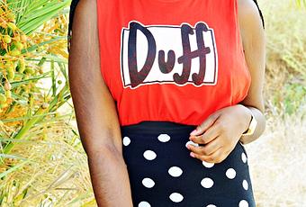 Es increíble el uso que le estoy dando a esta falda de lunares y es que como os lo he comentado muchas veces, cuando me compro una prenda intento pensar como lo combinaría con varios looks. En este caso la he combinado con esta camiseta de Duff (regalazo de mi amiga Rosario de hace ya años) pero la he combinado también así y así. Aunque odio la arruga que se hace con la camiseta en la tripa jaja todo hay que decirlo.Vosotras ¿Cómo la combinaríais? ¡Contadme!