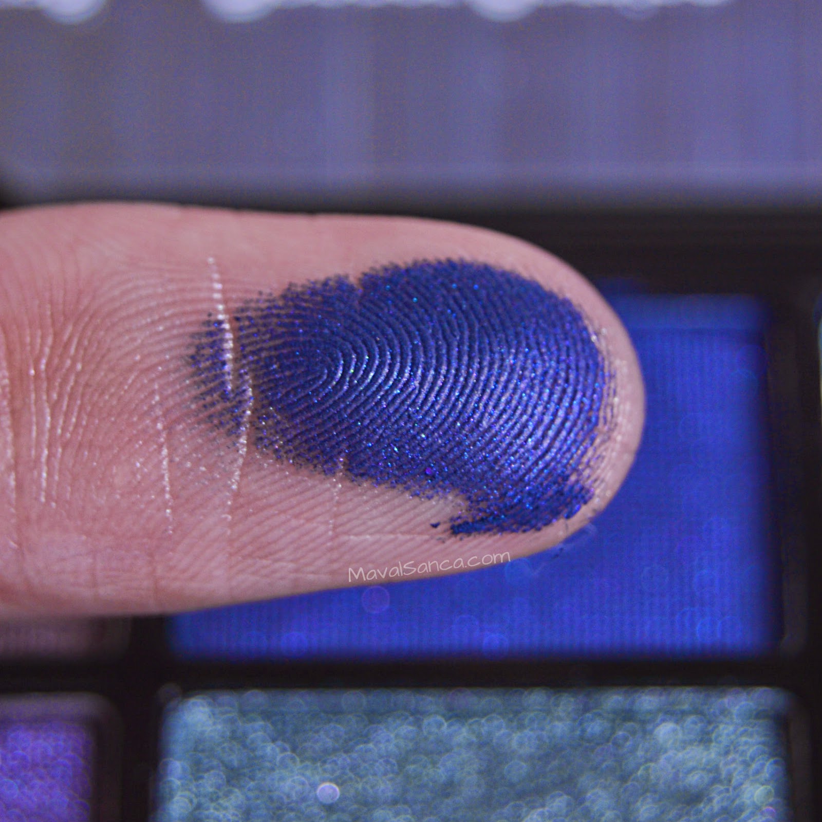 Sombra de ojos en color añil de con glitters plateados.Eyeshadow in indigocolor with silver glitters.