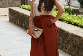 ¿Os acordáis del post donde explique todas las tendencias que había en esta primavera- verano? Pues una de ellas era el estilo gladiadora, diseñadores como Cavalli y Givenchy apuestan por este tipo de tendencia. En mi look, he querido representar esta tendencia con estos pantalones anchos y fluidos con la cintura media en color arcilla, y con un detalle del cordón en dorado que hace que tenga la inspiración gladiadora más acentuada. Pero para no pasarnos en este aire gladiadoras he querido combinarlo con este top en tostado y blanco roto, de pliegues que nos vuelve a la época más actual, me ha gustado el contraste de estas dos prendas porque al final queda una mezcla de tendencias que le dan el toque sofisticado. Lo podéis combinar con lo que más os guste, siempre es mejor un top ya que resaltaremos más el pantalón que es el protagonista. En mi caso he querido ponerla la guinda con este adorno del pelo, es un adorno metálico tipo felpa, pero que se ajusta a la perfección al conjunto y sobre todo al estilo. Yo llevo tacones y bolso de mano porque quería que fuese más formal y arreglado, pero si queréis hacerlo más casual, con unos zapatos o sandalias planas y otro tipo de bolso , os aseguro que se quedara genial también!