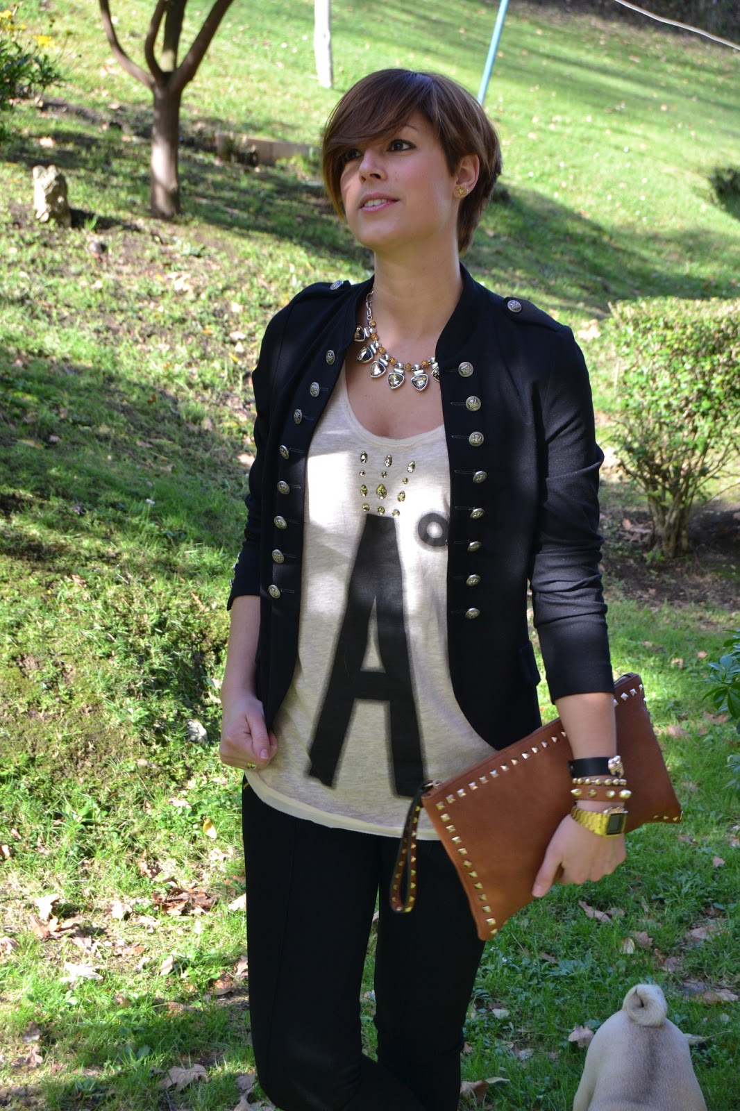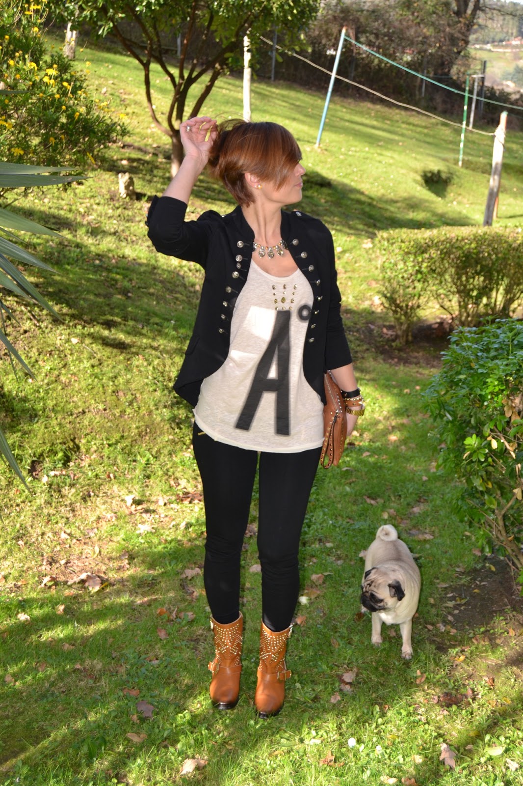 El resto del look ya ves sencillo, en mi linea, leggins negros y chaqueta tipo circense de algodón, vamos en mi estilo comoda y casual.