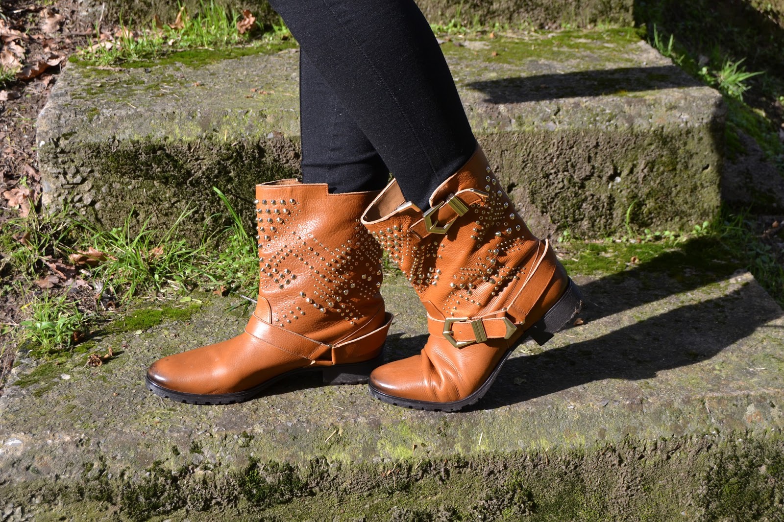 La otra estrella del look a parte de la parka fueron las botas moteras de tachas.. simplemente me encantan.