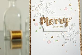 ¡Hola! ¡Feliz Diciembre! ¿Cómo lleváis las tarjetas navideñas? ¡Yo todavía las tengo a medias y creo que este año me va a pillar el toro! Aunque alguna sí que la tengo ya lista, menos mal, como por ejemplo la que os quiero enseñar hoy. He vuelto a apostar por el oro y la purpurina porque ¡me encantan esas dos cosas en una tarjeta navideña! :)