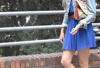 It's still a little bit cold in the mornings so that, the best option is a cardigan or a denim jacket, for example. Today combined with a blue klein dress and a glitter flats.