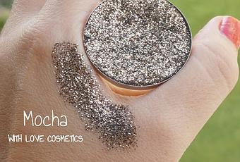 Cuando vi que existía una marca, With love Cosmetics (cruelty free y vegana), con glitter prensado sin necesidad de ningún tipo de pegamento o prebase para que se adhiera al párpado ni me lo pensé, porque rehuyo de ese tipo de productos. ¿El motivo? Necesito eficacia y agilidad a la hora de maquillarme. Y ponerme perdida de purpurina no está en mis planes. ¿Pero sin pegamento? ¡Lo compro! Entonces elegí el tono Mocha que parecía precioso y, según el swatch de la página de Instagram, cobertura total.