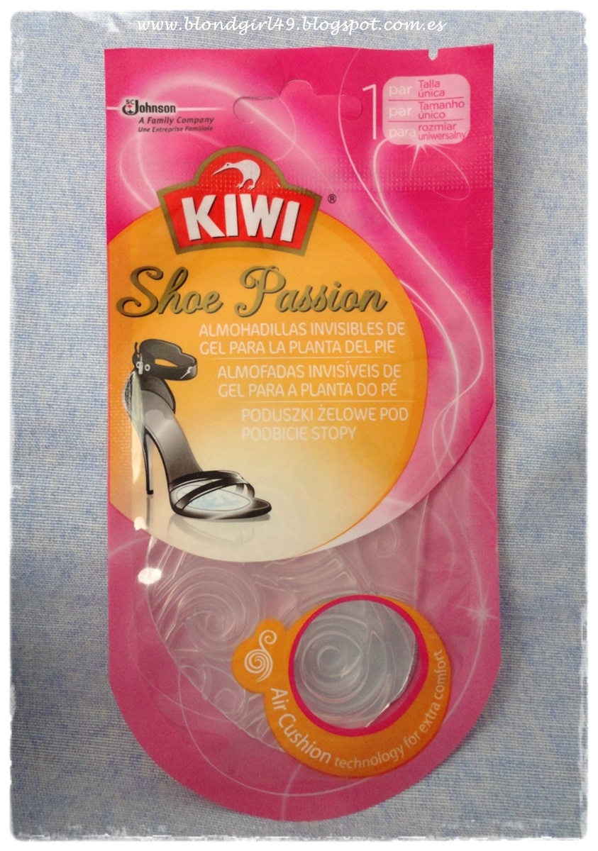 Shoe Passion, almohadilla planta pie de Kiwi¿Qué pone el producto?Son plantillas en gel para poner en los zapatos. Proporcionan alivio en la zona en la que hay más presión cuando caminamos. AmortiguaTiene 3 presentaciones diferentes para cubrir nuestras necesidades:- Almohadilla planta del pie- Almohadilla talón- Tiras para talón reutilizables y lavablesEstán testadas dermatológicamente Aplicación:Se retira la película protectora, se colocan en el zapato y se presiona firmemente. Así ya podremos usar nuestros zapatos.Opinión: todavía las tengo sin estrenar, las guardo para una ocasión especial :)Precio: 4,88€ el pack