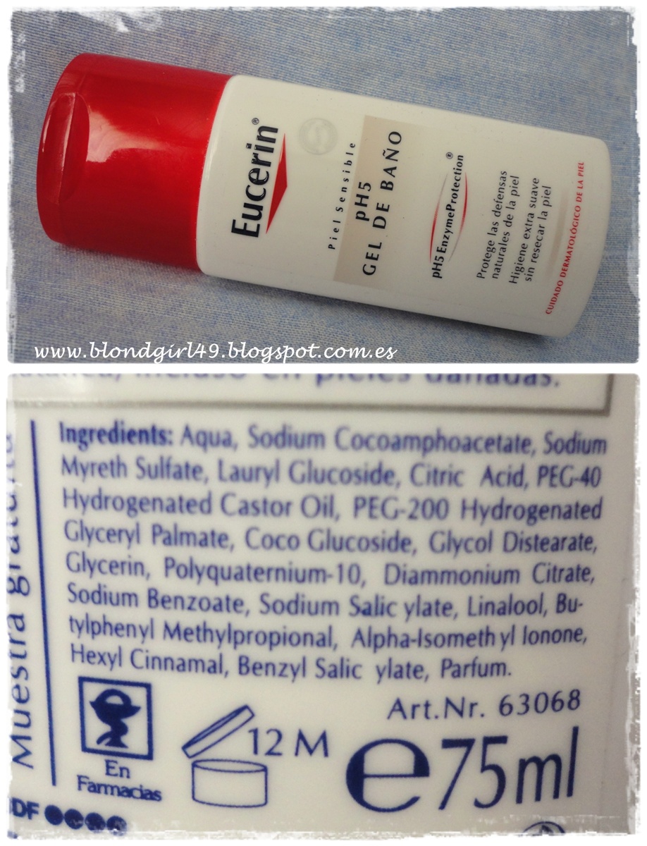 Gel de baño de Eucerin:¿Qué pone del producto? Es un gel de baño protector que limpia muy suavemente sin resecar la piel. Ha sido desarrollado para tratar las necesidades específicas de la piel sensible. Proporciona higiene diaria extra suave y indicada para la piel irritada. No lleva jabón. Pone que estudios clínicos avalan: excelente eficacia y tolerabilidad cutánea, incluso en pieles dañadas.Opinión: ya anteriormente había usado este gel para pieles sensibles, precisamente me lo compré para cuando me operaron en la espalda y tuvieron que darme unos puntos (no fue nada importante ehh^^) pero para la ducha no quería usar los geles de siempre sino uno que no me pudiera irritar la cicatriz, así que usé este que compramos en la farmacia. Tiene un olor muy suave y deja la piel super suavita, no irrita, no me escocía la cicatriz y, lo que es más importante, me dejaba bien limpita y nunca se me infectó. Así que puedo confirmar que es para pieles sensibles, incluso con heridas^^Para casos especiales como el que os he contado sí me gusta, pero para usar habitualmente tampoco es necesario para mi piel, la tengo sensible pero los geles normales no me irritan la piel y necesito que mis geles tengan aromas dulzones jijijiPrecio: El bote original es de 400ml y cuesta 10,50€ (el que nos han mandado es de 75ml)