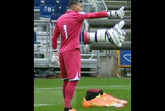 Terminamos con un guiño a estos últimos partidos de la fase de clasificación para la EURO 2016. En este caso viajamos a Malta para ver al guardameta titular, Andrew Hogg, que milita en el Kalloni griego. Desde hace un año Hogg tiene contrato con la marca chipriota RG, y en este caso concreto, al igual que otros porteros de la marca, usa el modelo tope de gama, el Zima, un guante de corte rollfinger con palma Contact Supreme de máxima garantía en grip y en duración. También apreciamos que se siente cómodo con el modelo de la temporada pasada de Predator, el Lethal Zones II de colourway White/ Black/ Orange.