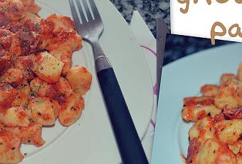 Formaremos un agujero en el centro del puré e introduciremos 3/4 partes de la harina, el huevo y la sal en el centro. Mezclaremos los ingredientes partiendo del centro hacia el exterior. Añadiremos el resto hasta obtener una mezcla esponjosa y homogénea. Con un poco de harina en las manos, formaremos unos rollitos de 15cm de grosor, mas o menos, y los cortaremos en trozos de 1,5cm. En una olla, pondremos a ebullición agua con sal y vertiéremos en ella los gnocchi en varias tandas. En cuanto suban a la superficie los retiraremos con un colador o espumadera. Ahora prepararemos la salsa; en primer lugar cortaremos las lonchas de jamón en pequeños cuadrados y las pasaremos por una sartén hasta que queden dorados. En una olla, echaremos el tomate triturado lo dejaremos a fuego medio unos minutos, seguidamente añadiremos una pizca de sal y ajo molido. Seguiremos echando los gnocchi, el jamón y un puñadito de albahaca. Removeremos bien, dejaremos un par de minutos más al fuego y serviremos. Podéis servirlo con un poco de queso en polvo, les dará un toque especial. ¡Feliz martes! :D.....................................................................................................FACEBOOK -♥-TWITTER-♥-CHICISIMO-♥-TRENDTATION-♥-BLOGLOVIN