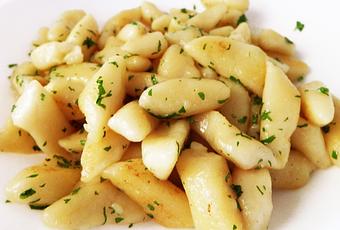 -4 cucharadas de mantequilla-el jugo de un limón-perejil fresco picado1-Cocer los gnocchis en agua hirviendo. Cuando empiecen a flotar ir sacándolos con una espumadera.2-Derretir la mantequilla en una sartén y dorar los gnocchis, debes dejar que se cocinen y se doren bien, pero con cuidado de no poner el fuego demasiado alto, para que no se queme la mantequilla. Añadir el jugo del limón y sal, remover bien, que absorban el sabor.3-Por último echar el perjil picado y retirar del fuego para que no se queme. Servir y a comer.