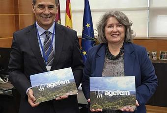 El presidente de Agefem, Juan Antonio Gómez-Pintado, y la consejera de Desarrollo Sostenible de C-LM, Mercedes Gómez.