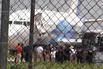 Los migrantes fueron trasladados a bordo de un avión de la Policía Federal de México.