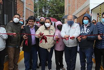 La presidenta municipal de Texcoco Sandra Falcón Venegas, acompañada por integrantes del cuerpo de gobierno se reunió con autoridades vecinas para realizar la entrega en la tercera cerrada de las salinas, las obras pactadas.