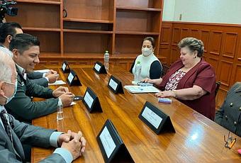 El gobernador del Estado, Ricardo Gallardo Cardona y la representante del Sindicato Único de Trabajadores al Servicio del Gobierno del Estado (SUTSGE) encabezada por Bernardina Lara Argüelles, sostuvieron la primer reunión de dialogo para solucionar los conflictos que se han generado tras el cambio de gobierno.