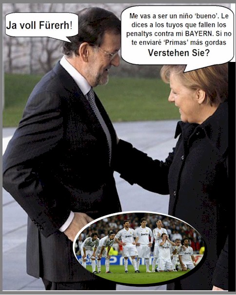 En la sección de humor, mostramos la foto-montaje de Duce en la que el Real Madrid perdió contra el Bayern y Rajoy se humilla contra Merkel. Otros humoristas repasan lo sucedido estos últimos días: Forges, (y su pesimismo gubernamental); Ventura (y la Tercera República); Vergara (y la subida de impuestos); Varona (y el dedo de RTVE); Erlich (y la subida del paro); J. R. Mora (y los primeros movimientos de recuperación); Ávila (el rey y su caza ya no casan); y los novios alemanes del rey y de Rajoy.