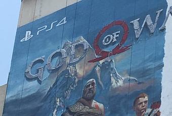 Es por ello que cada rincón se viste de una manera para ofrecer un anuncio o un tributo a uno de esos juegos que apuntan a ser protagonistas del evento. Uno de esos juegos es obviamente el esperado God of War con Kratos como cabeza visible una vez mas.