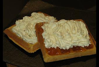 Ponemos en funcionamiento nuestra gofrera y vamos poniendo la masa, la cerramos y seguimos las instrucciones, cuando creamos que ya está listo miramos con el dedo a ver si está lo suficientemente crujiente. Sacamos, decoramos a nuestro gusto y a comer. Con estas medidas salen alrededor de unos 10 gofres.