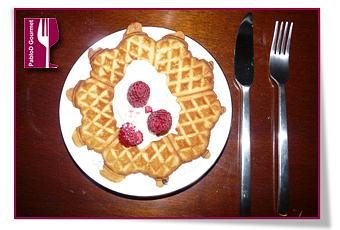 Ahora ya toca calentar la gofrera, yo la puse a media potencia, pero eso ya depende de cada una pero sobre todo de tus gustos; ve probando con varios gofres hasta que salgan como a ti te gusten, pero ten en cuenta que a más potencia, los gofres saldrán más crujientes y duros pero sobre todo tendrás que vigilar muy bien el tiempo para que no se te quemen.