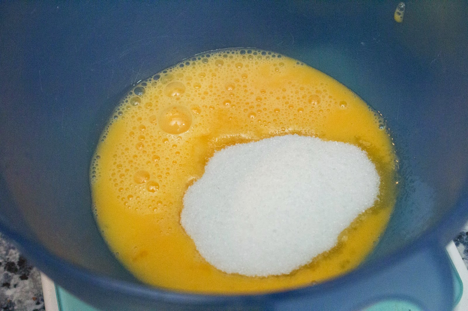 Luego añade el azúcar y mezcla todo bien.
