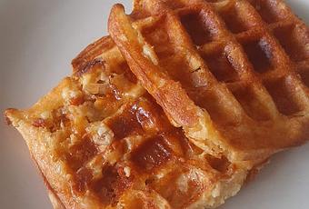 Calentar la gofrera y verter pate de la masa añadir una cucharada de la mezcla de cebolla caramelizada y sobrasada, añadir varios trozos de Brie y cerrarla.