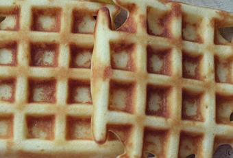 Enchufar la gofrera y engrasarla con un poquito de aceite. Con ayuda de una cuchara para servir helado, poner con mucho cuidado una porción de masa en el centro de la superficie de la gofrera. Con mi gofrera se pueden hacer dos gofres a la vez, por lo que pongo dos porciones de masa. Cerrar la gofrera y esperar unos 3 o 4 minutos hasta que los gofres estén listos, hay que procurar no abrir la gofrera.