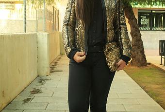 Hello!! I weared this look for a family dinner. I like so much this combination in gold and black. I showed this jacket few days ago and finally it's mine!! It is very striking and I decided to combine with black clothes, so, it's the protagonist. What do you think? Do you like this combination?