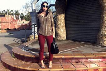 (Photos by Zibero) Jersey dorado/Golden Pull:Pullbear,Bolso shopper/Bag:PepeMoll (aw12-13), Bailarinas doradas/golden flats:H&M, Gafas de sol/Sunglasses:Kiabi, Pantalones/Burgundy pants:BlancoSuite(aw12-13)